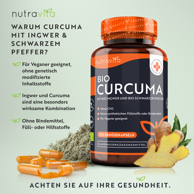 Dieses Produkt enthält eine einzigartige Mischung aus Bio-Kurkuma, schwarzem Bio-Pfeffer und Bio-Ingwer. Durch die Zugabe von schwarzem Pfeffer wir...